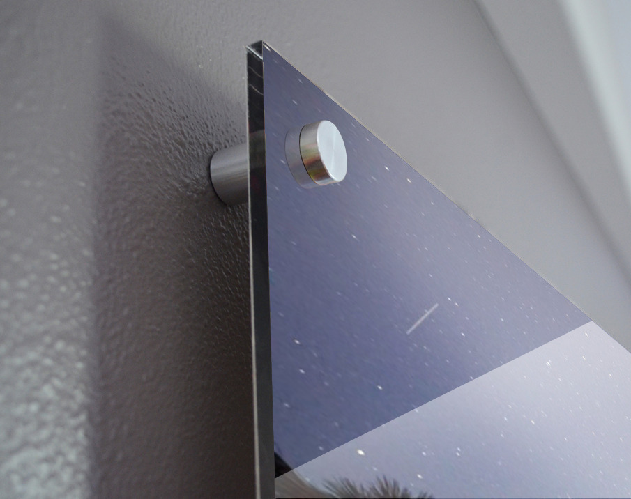 Printed to the edge - Ready to hang - provided with 4 premium polished aluminum stand off ( wall screws and mounting hardware provided )