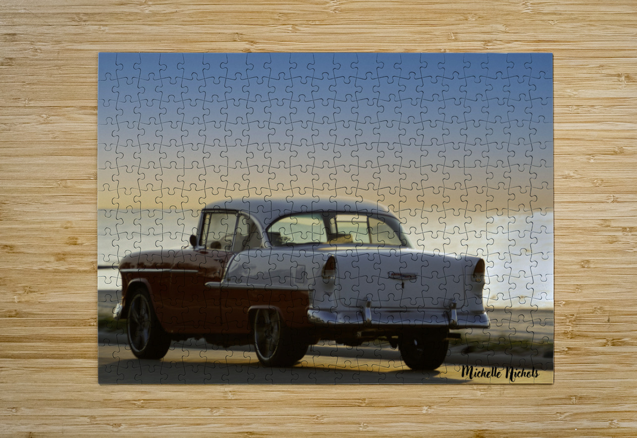 Red and White Classic Car on the Beach Michelle Nichols Puzzle printing