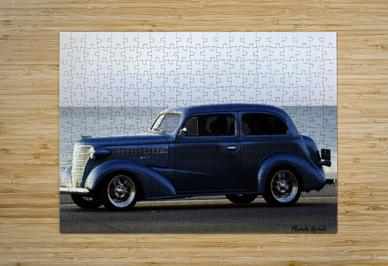 Royal Blue Classic Car on the Beach Michelle Nichols Puzzle printing
