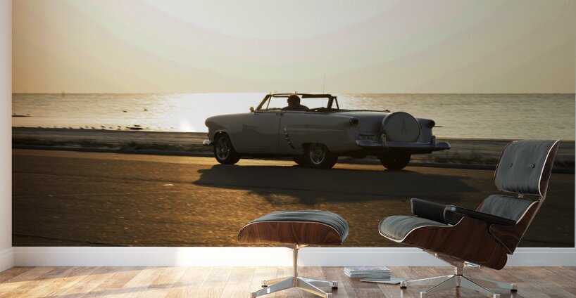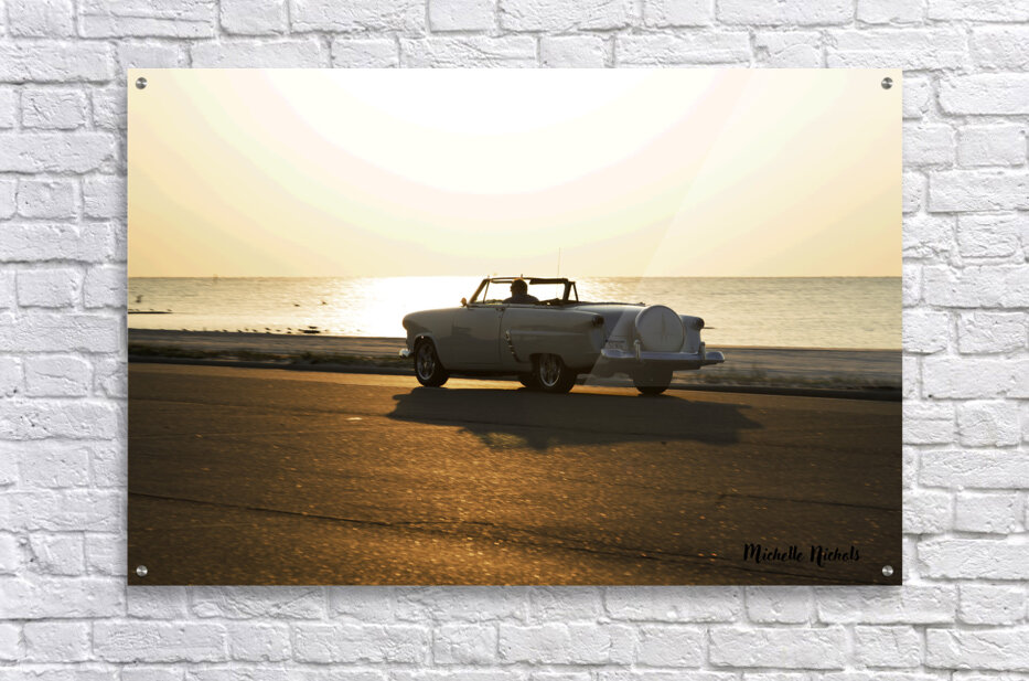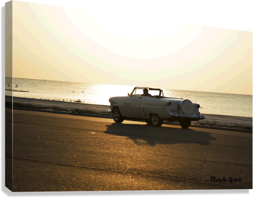 ABOUT THIS ARTWORK: WHITE CLASSIC CONVERTIBLE ON THE BEACH