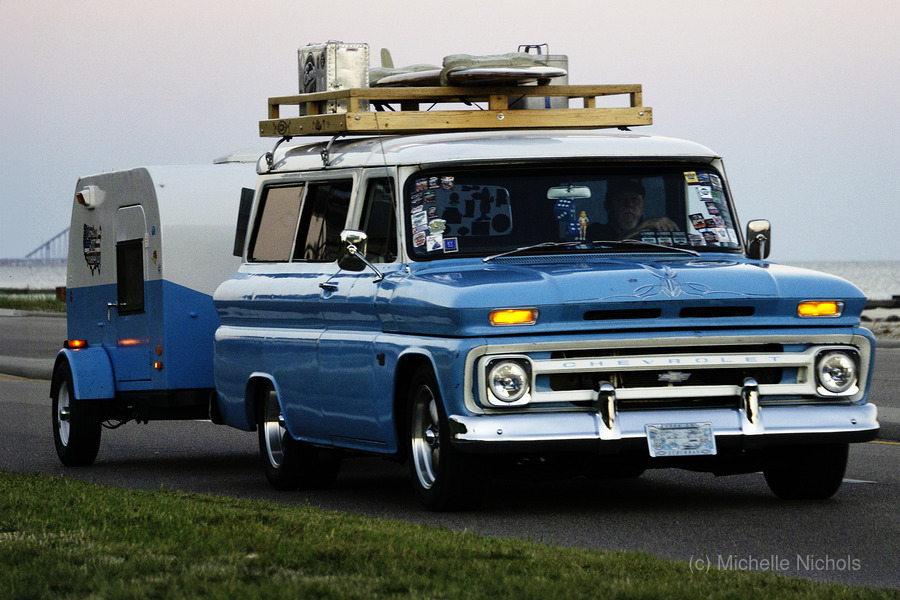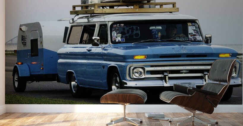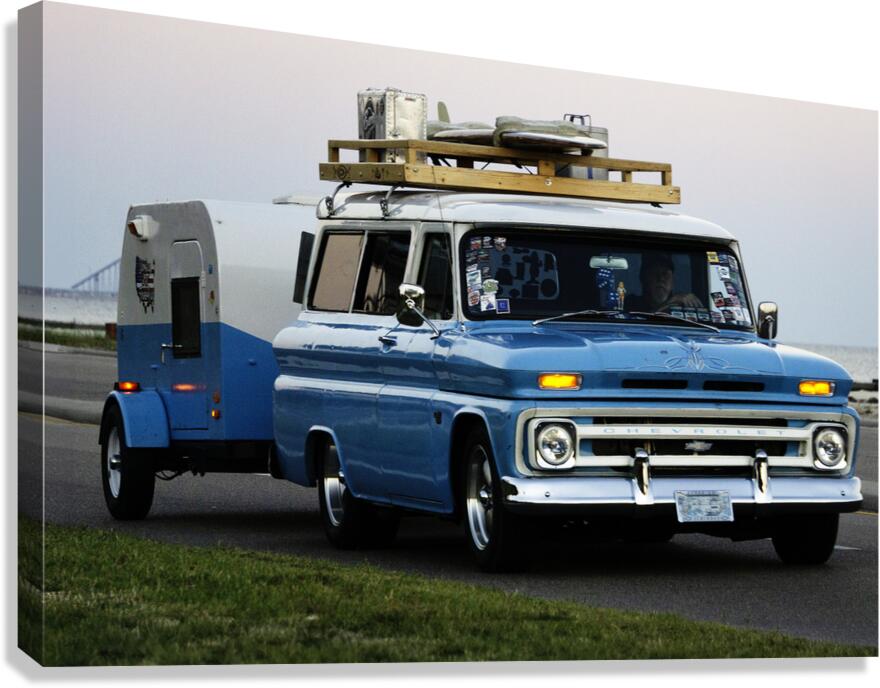 Get this artwork "Blue Chevy Wagon with Trailer" in a framed print.