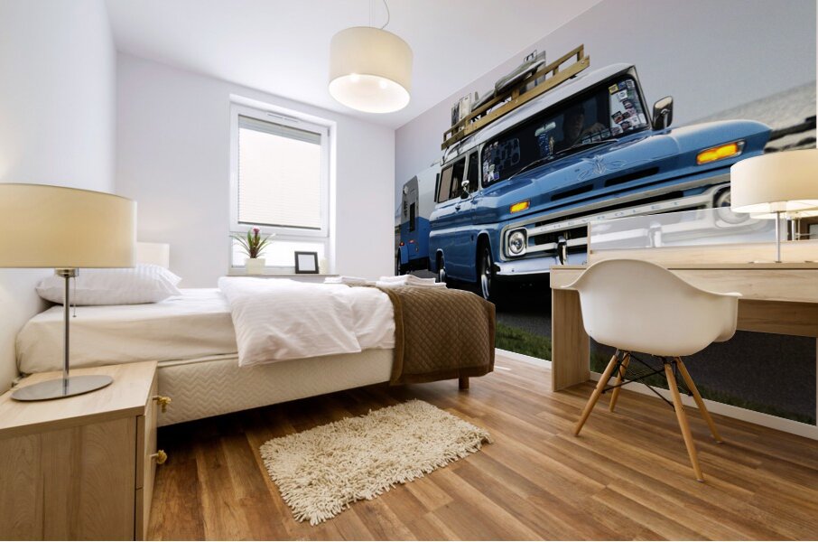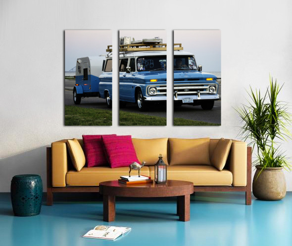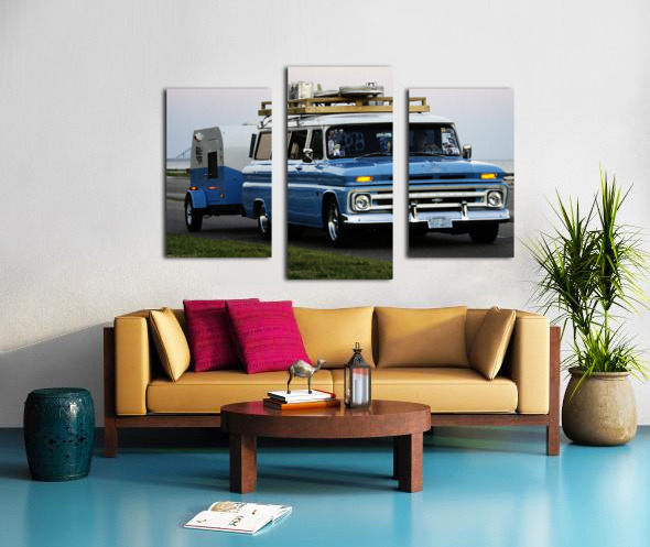 Blue Chevy Wagon with Trailer Picture Frame Printing