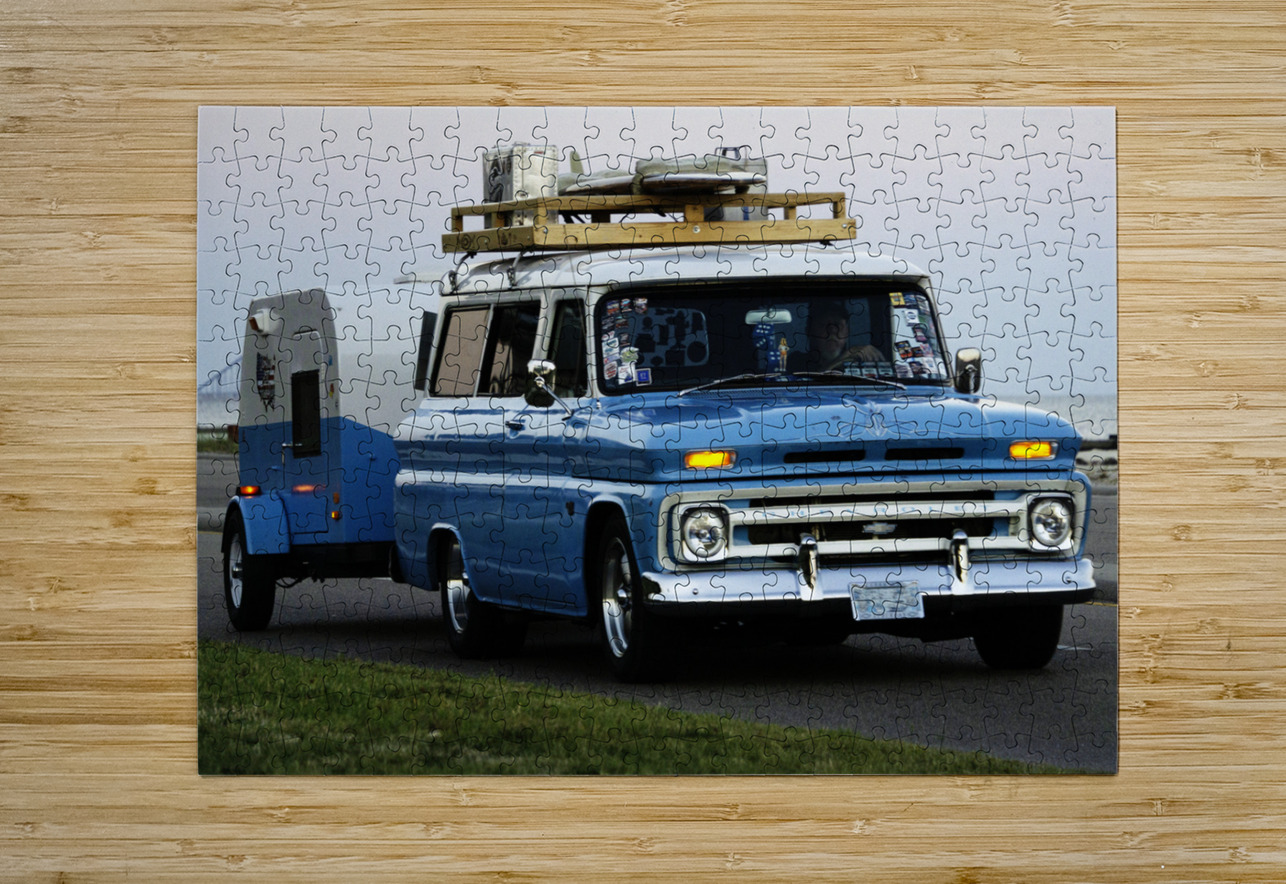 Blue Chevy Wagon with Trailer Michelle Nichols Puzzle printing
