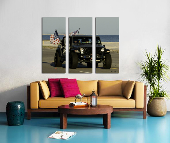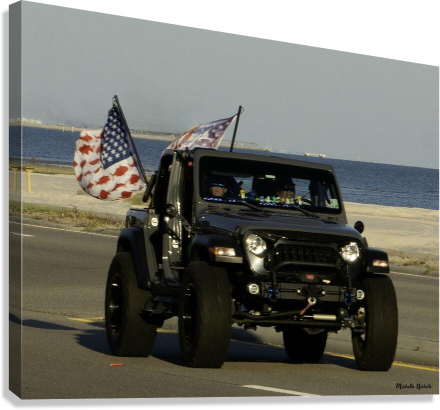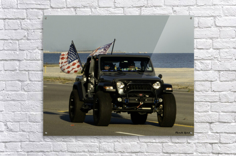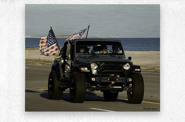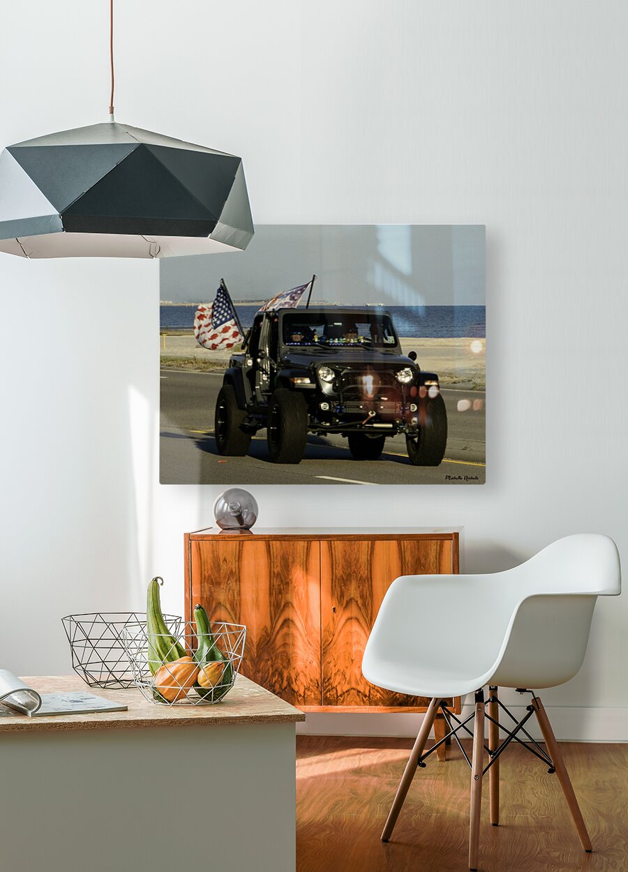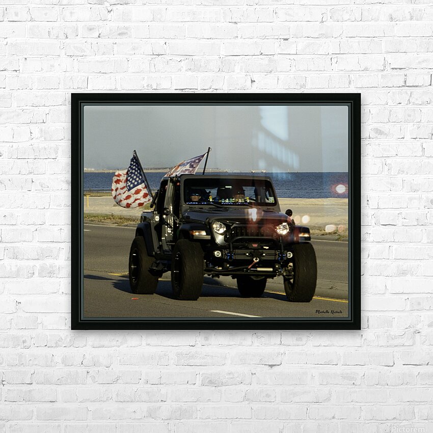 Jeep with Flags  HD Metal print with Floating Frame on Back