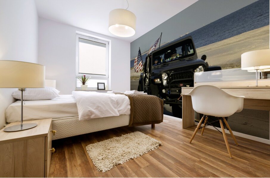 Jeep with Flags Wood print