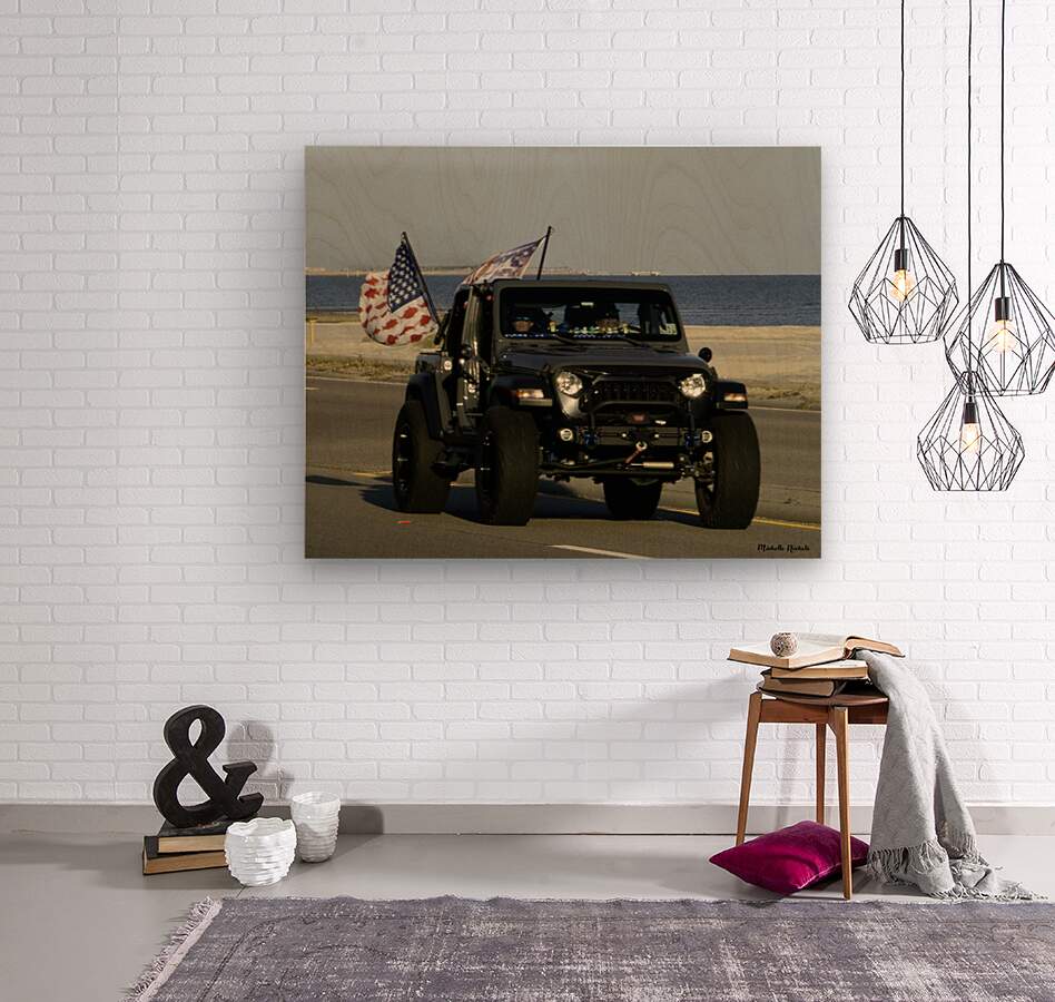 Jeep with Flags  Wood print