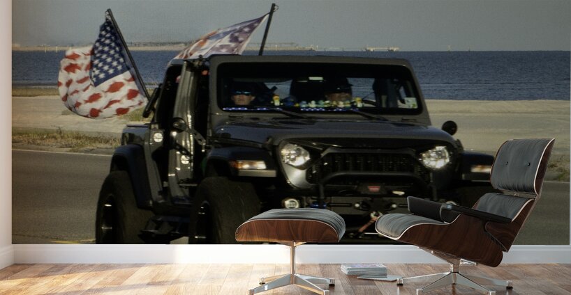 Jeep with Flags  HD Metal print with Floating Frame on Back