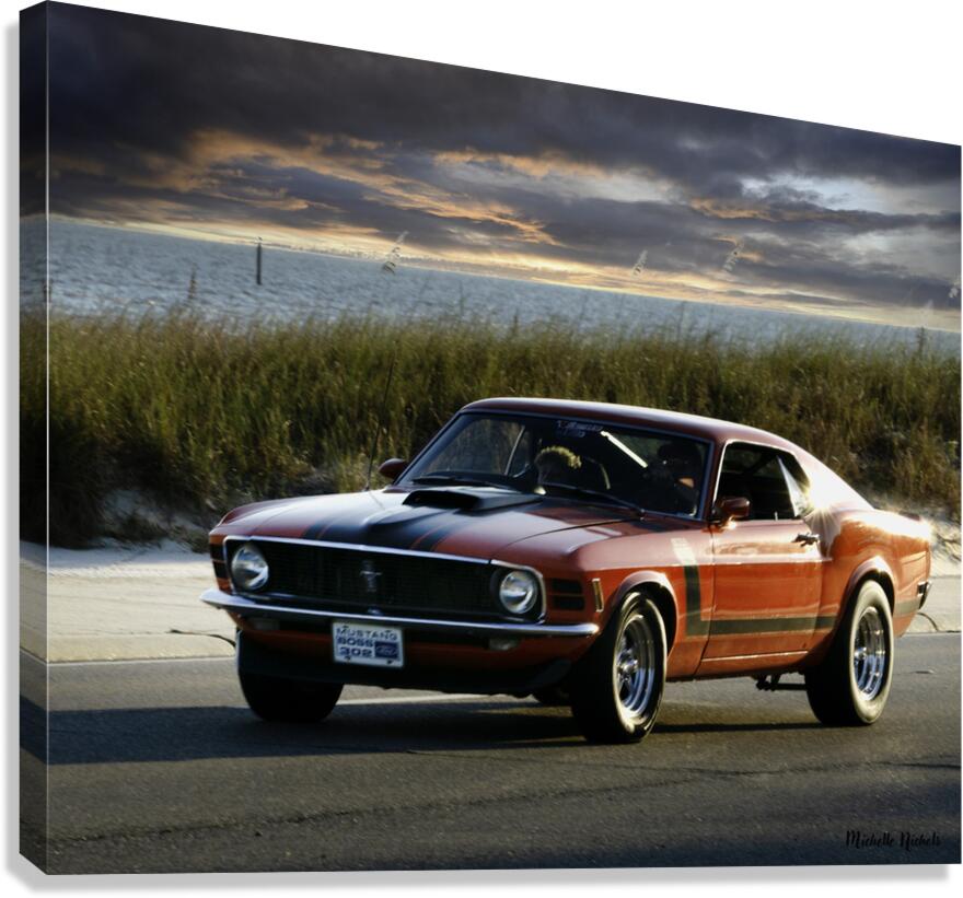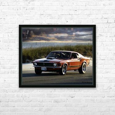 Get this artwork "Red Mustang w Black Stripe" in a framed print.