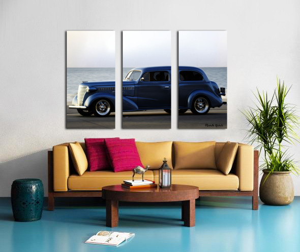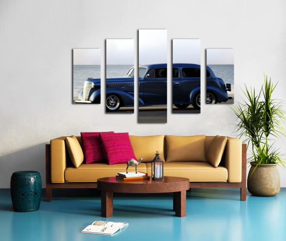 SUR CETTE OEUVRE: ROYAL BLUE CLASSIC CAR ON THE BEACH