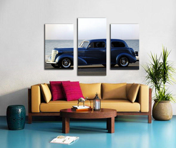 Royal Blue Classic Car on the Beach Impression sur toile