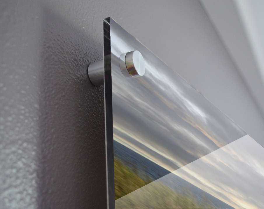 Impression sur acrylique avec entretoises ( cylindres métalliques )