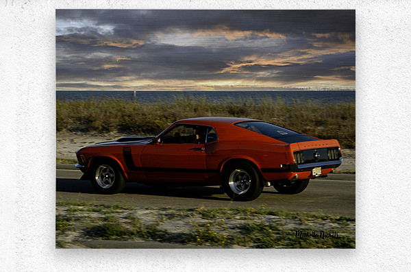 SUR CETTE OEUVRE: RED MUSTANG W BLACK STRIPE REAR VIEW